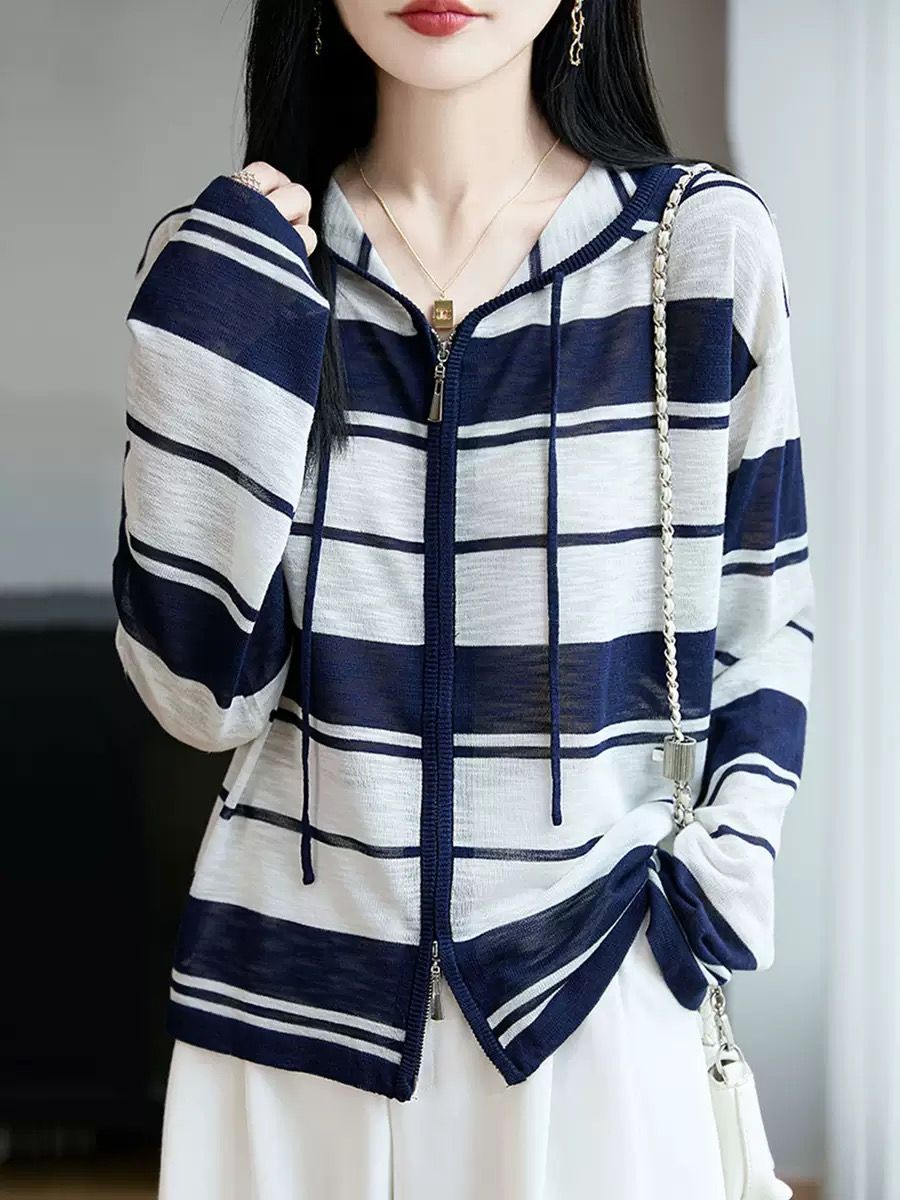 熱賣中🔥 即將售完3022條紋針織連帽上衣【衣長62胸圍108】