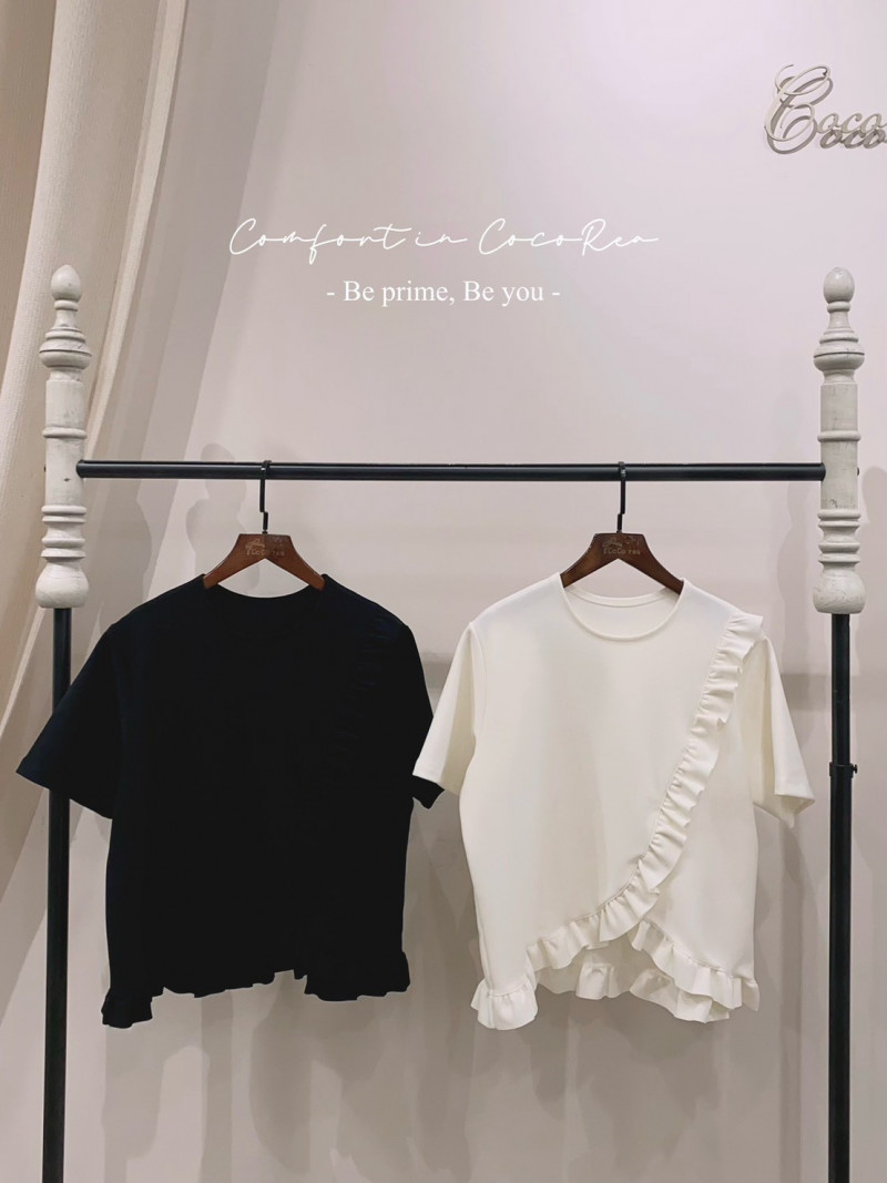 熱賣中🔥 即將售完C28標 預購 聯名款荷葉滾邊彈力棉上衣 黑/米 胸110 長55-59 連線價1180喜歡+1帶哪裡取(A嘉義取B台中取C郵寄)