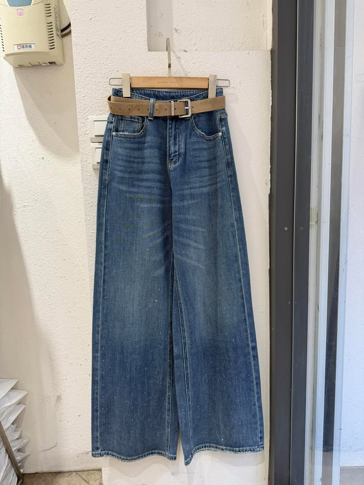 熱賣中🔥 即將售完C30鑽鑽牛仔寬褲+麂皮皮帶