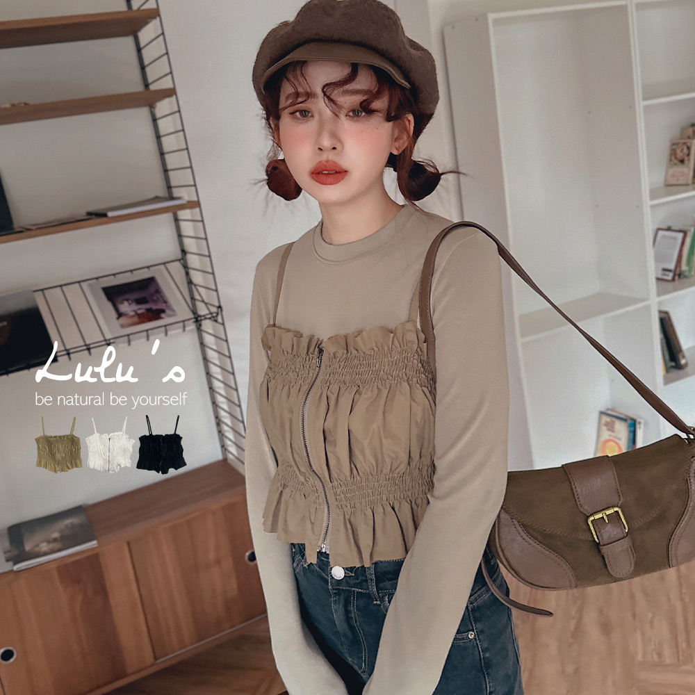 熱賣中🔥 即將售完現貨66折/氣質女孩拉鍊抓皺疊穿背心3色【A01240715】