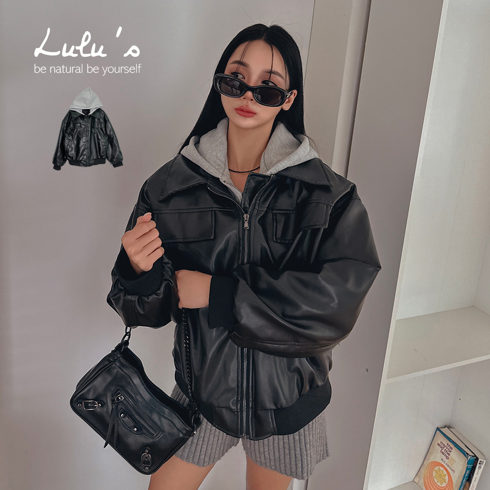 熱賣中🔥 即將售完限時下殺/率性假兩件連帽鋪棉皮質外套黑【A03240114】