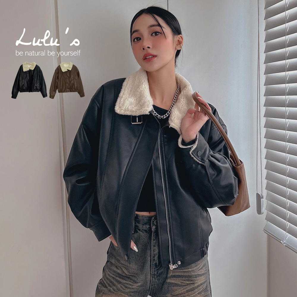 熱賣中🔥 即將售完現貨66折/韓國街頭刷毛翻領釦環皮質外套2色【A03240113】