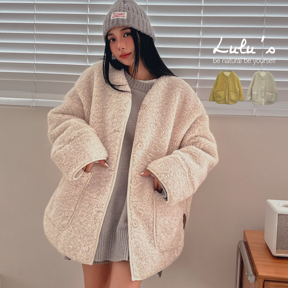 熱賣中🔥 即將售完現貨66折/寬鬆後車標羊羔毛無領外套2色【A03240116】