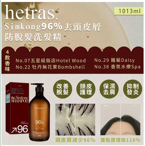 熱賣中🔥 即將售完B30HETRAS Sim kong 96%去頭皮屑防脫髮洗髮精 1013ml