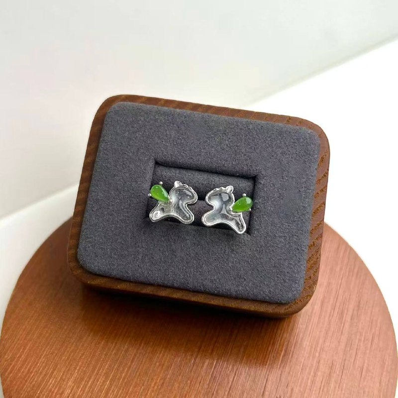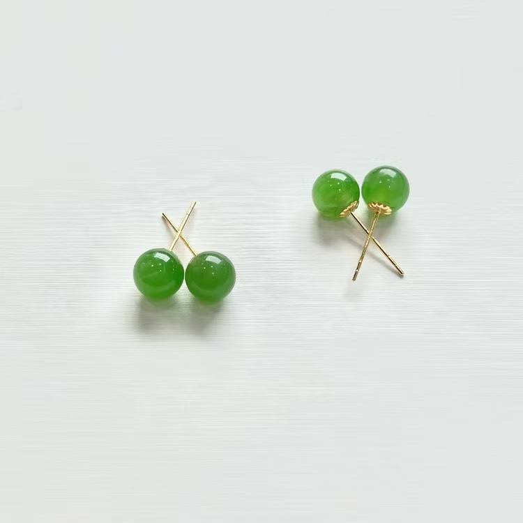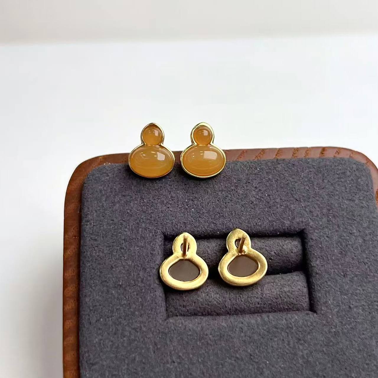 Hot Selling🔥 Almost Sold OutAJ377-和田玉糖料3mm半圆&5x7mm蛋面拼镶葫芦耳钉