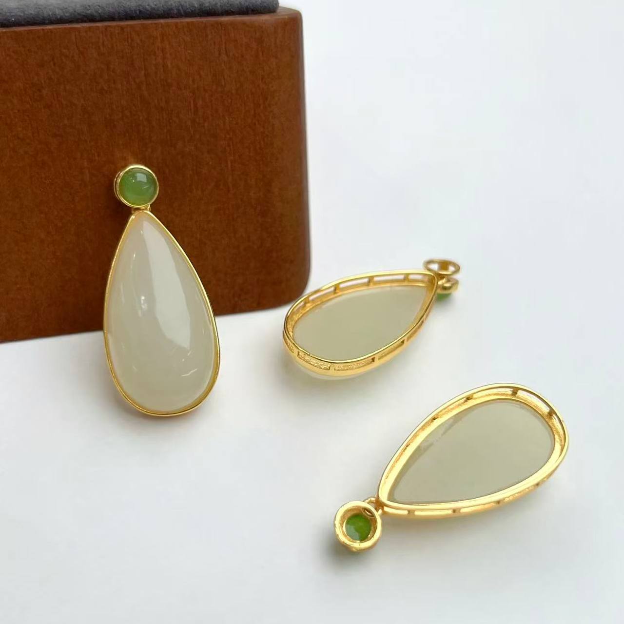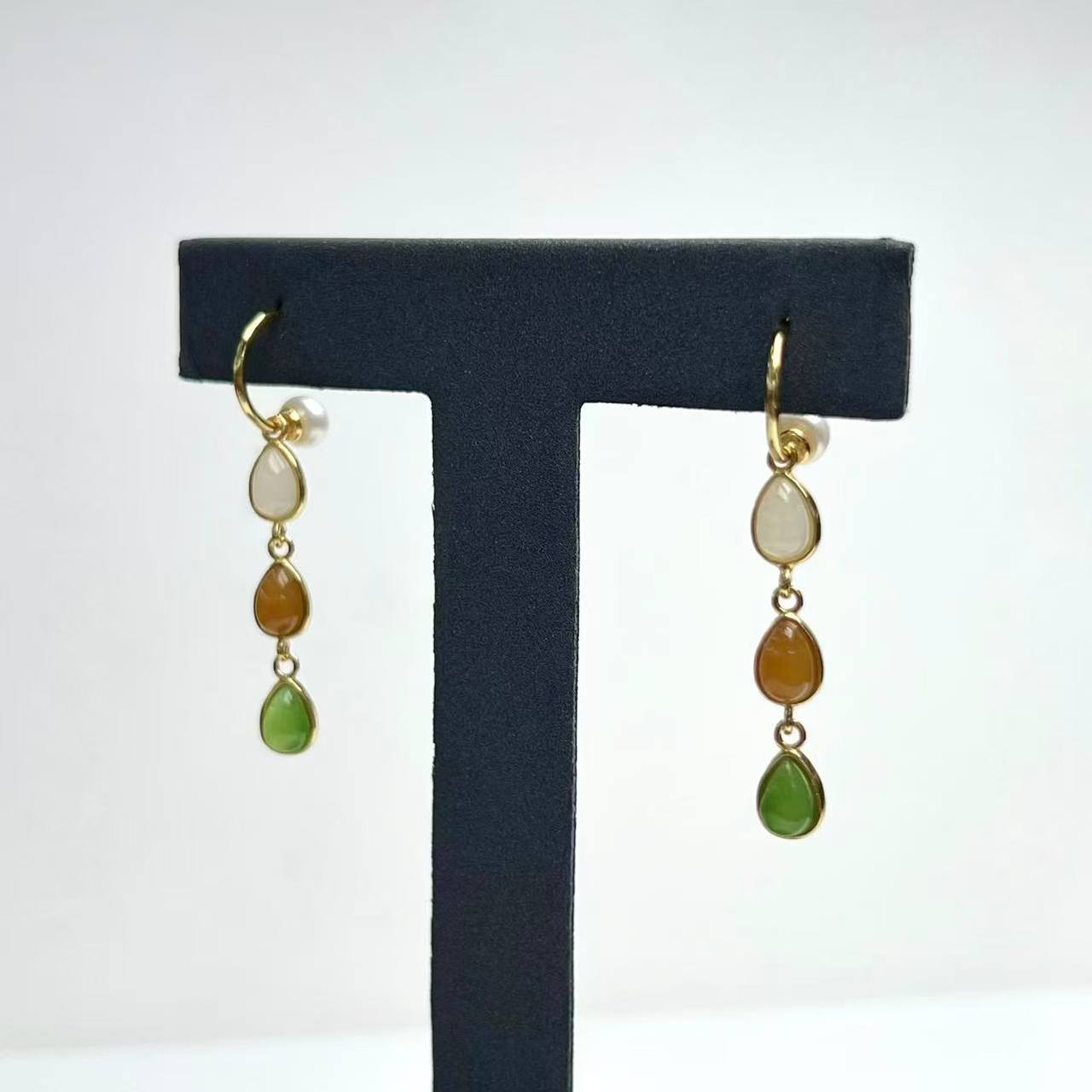 Hot Selling🔥 Almost Sold OutAJ375-和田玉多宝4x6mm水滴拼镶耳钉