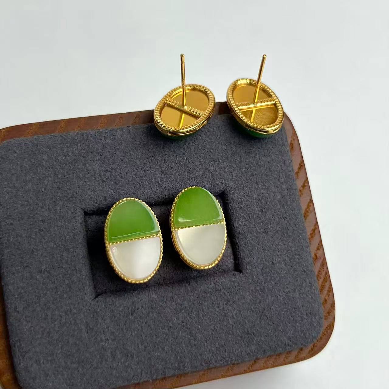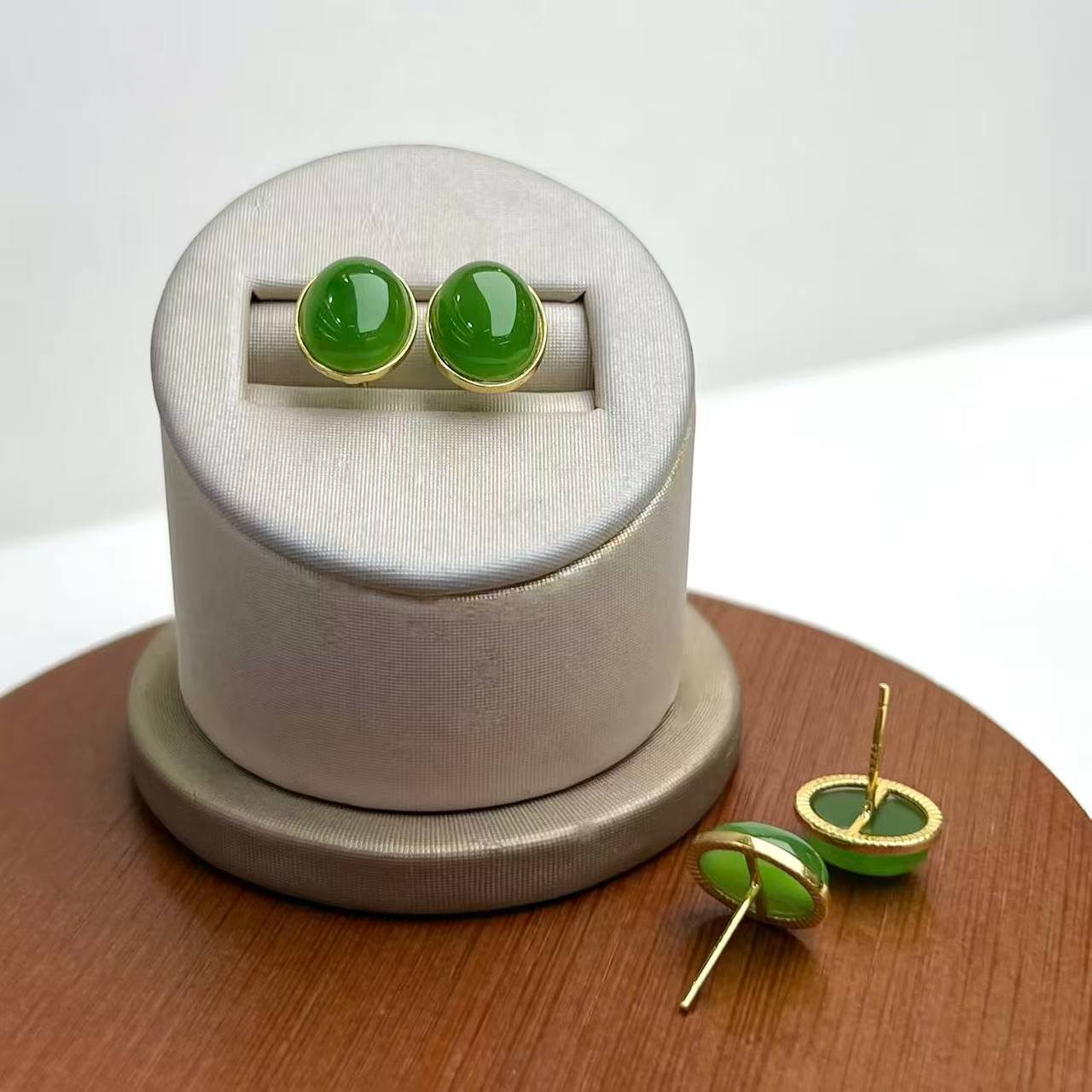 Hot Selling🔥 Almost Sold OutAJ419-和田碧玉8x10mm+-蛋面耳钉