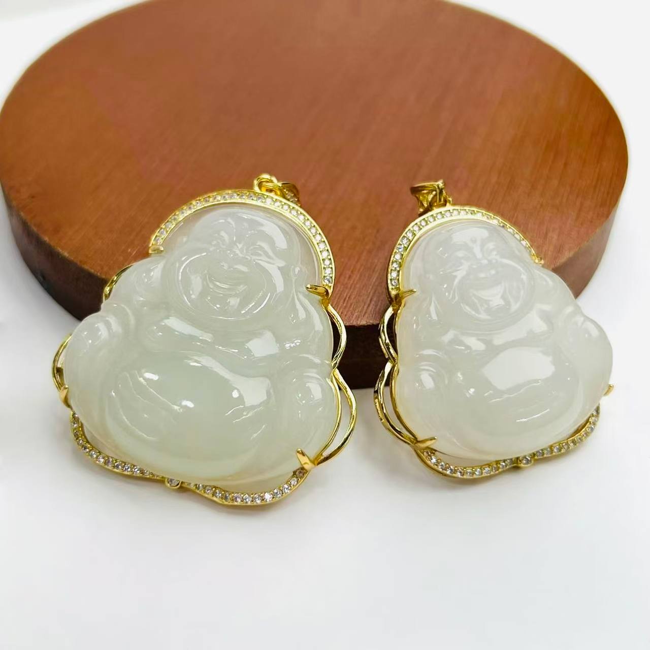 Hot Selling🔥 Almost Sold OutAJ293-和田白玉30mm佛公吊坠 金