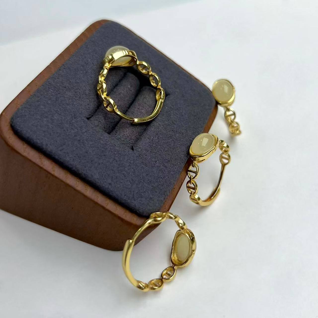 Hot Selling🔥 Almost Sold OutAJ317-和田碧玉3x5mm+-蛋面拼镶条形戒