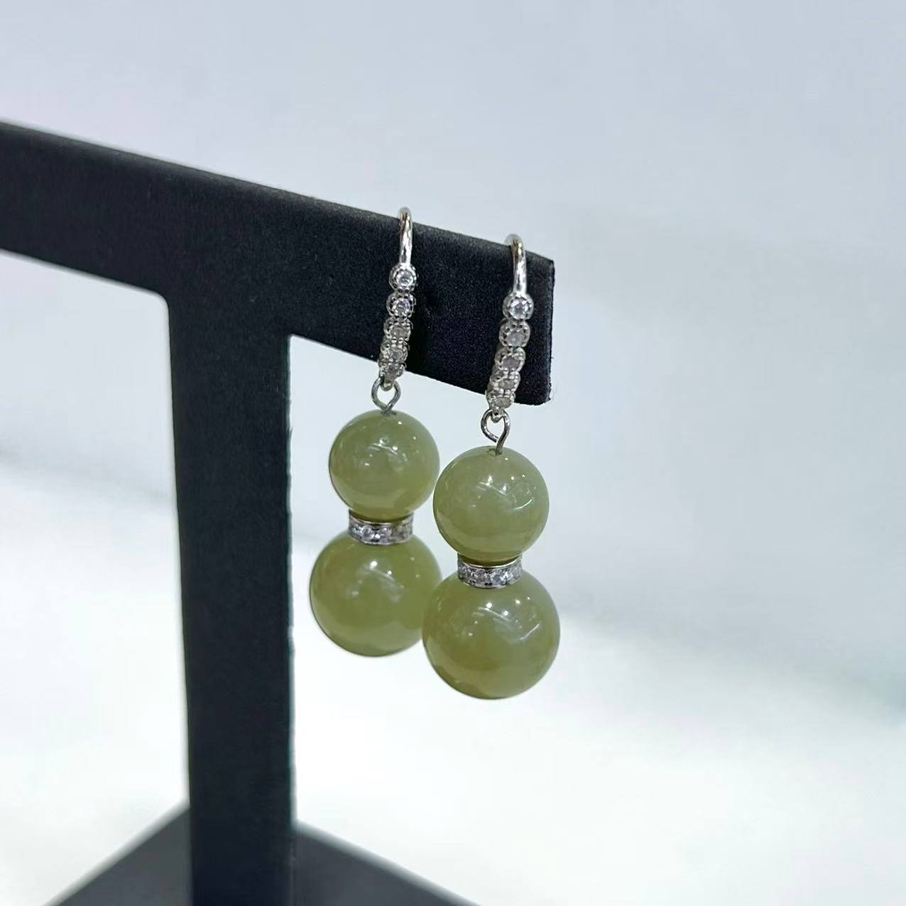 Hot Selling🔥 Almost Sold OutAJ445-和田玉糖料12mm+-&10mm+-拼镶葫芦耳挂