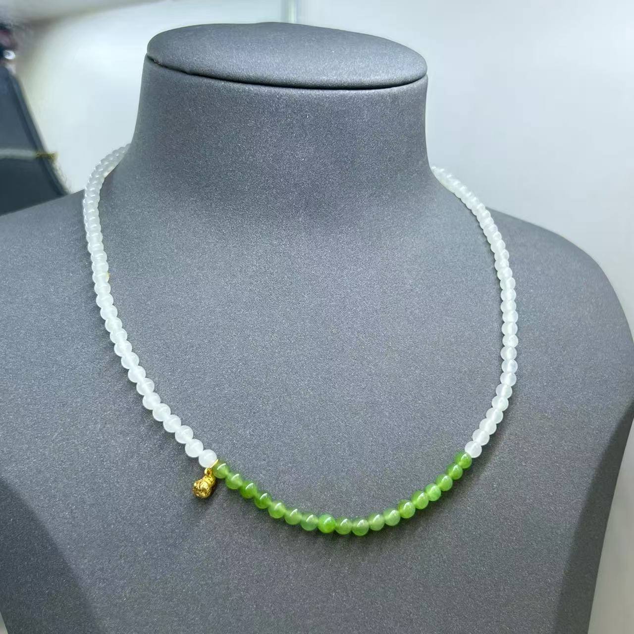 Hot Selling🔥 Almost Sold OutAJ265-和田碧玉4mm&4mm白玉葫芦项链