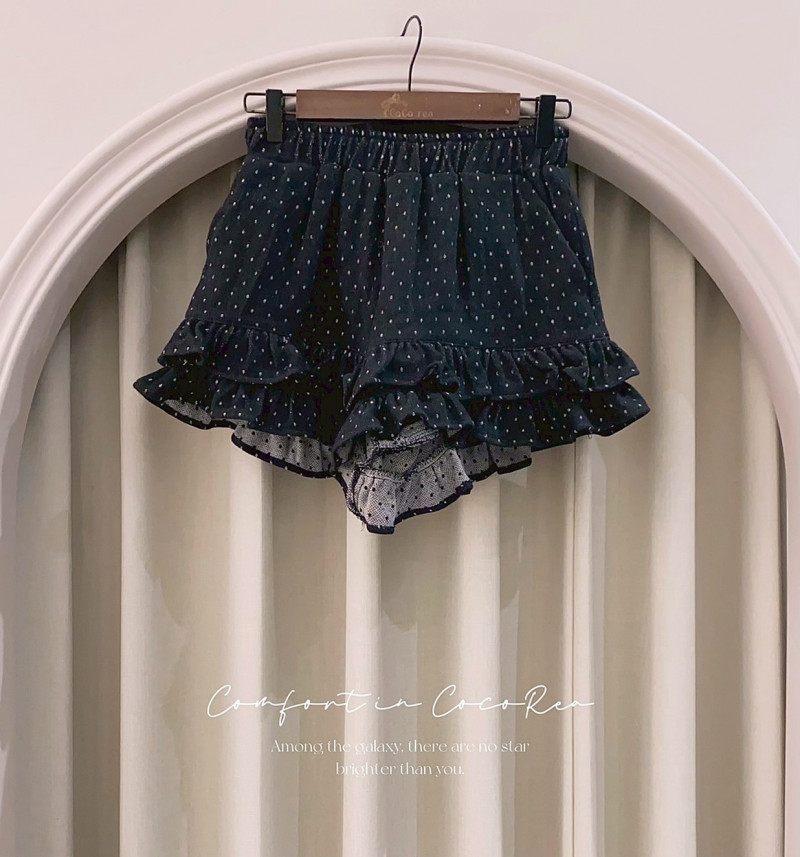 熱賣中🔥 即將售完A10標 預購 點點雙層荷葉牛仔棉短褲 臀42吋內 腰26-40 長33-37 連線價1580(前10位加單$1488)喜歡+1帶哪裡取(A嘉義取B台中取C郵寄)