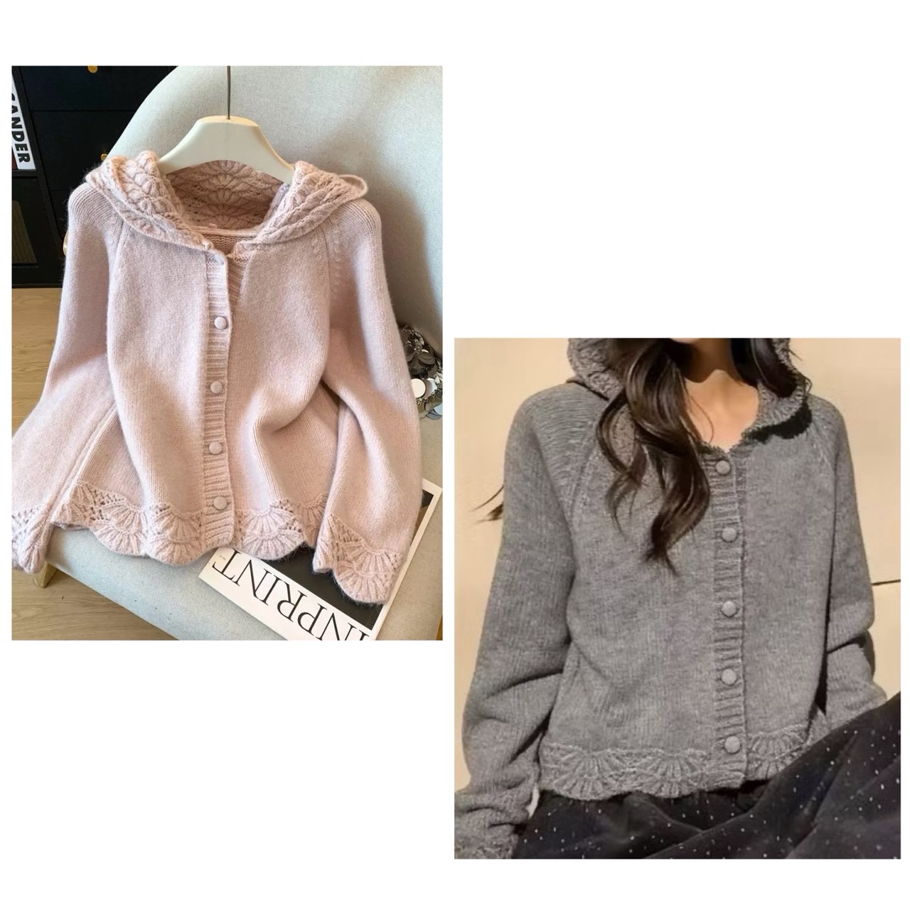熱賣中🔥 即將售完A324緹花連帽針織外套