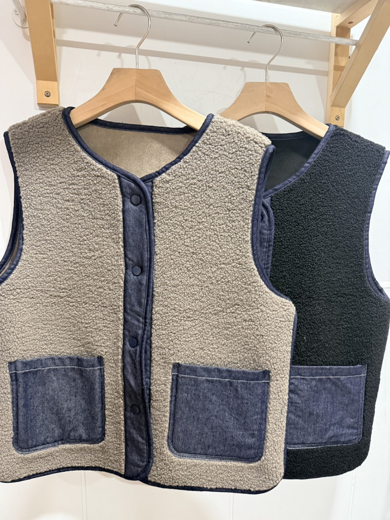 熱賣中🔥 即將售完A327牛仔拼接QQ毛背心