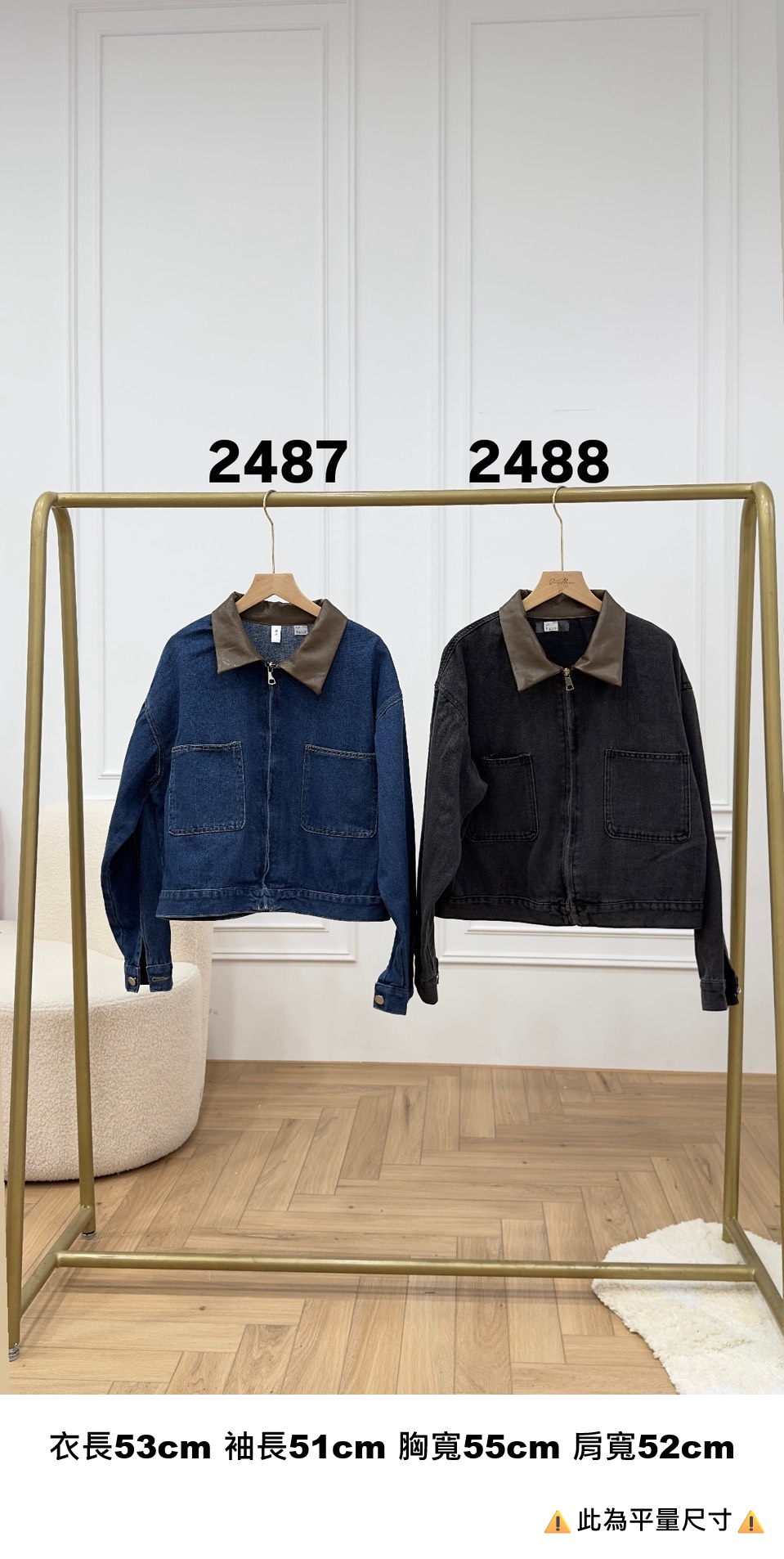 熱賣中🔥 即將售完女KN0923-拼接皮革領洗水拉鍊牛仔長袖外套