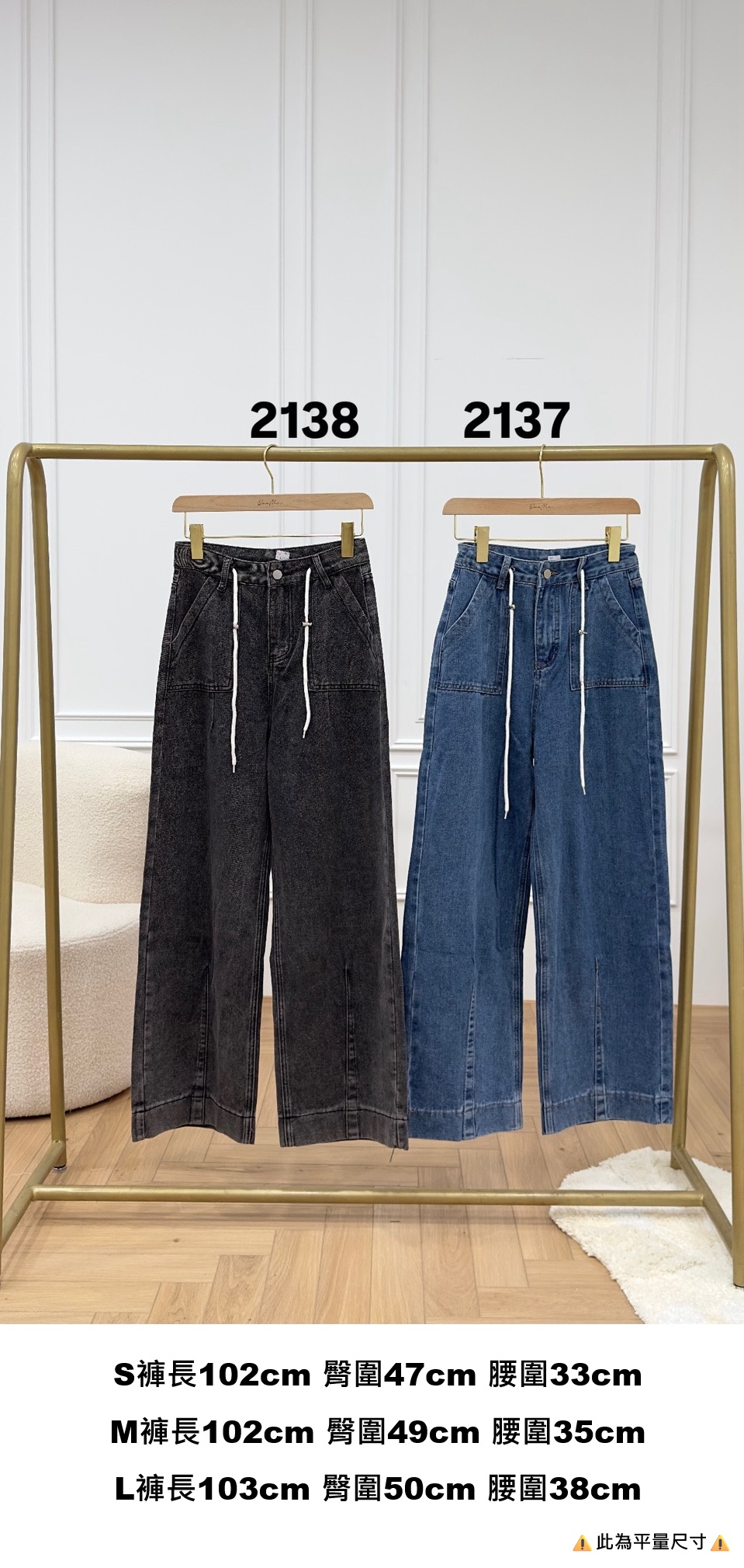 熱賣中🔥 即將售完女KN0820-2137藍抽繩造型口袋洗水牛仔褲