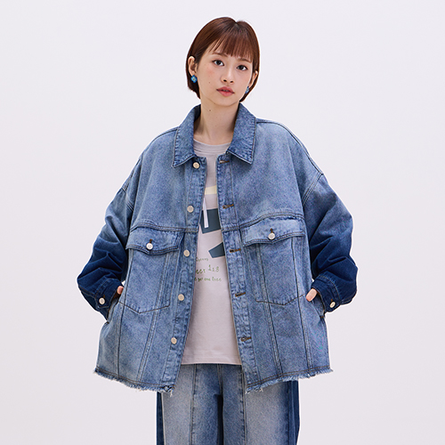 熱賣中🔥 即將售完【E JEANS】藍色漸層落肩造型牛仔外套