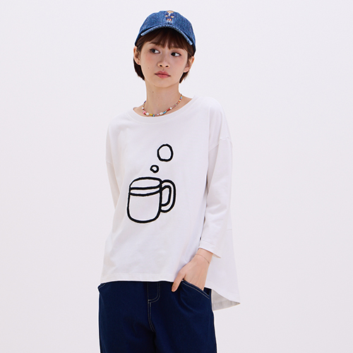 熱賣中🔥 即將售完【E-WEAR】來杯咖啡吧!毛巾繡圖騰上衣 - 三色