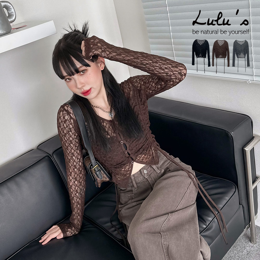 熱賣中🔥 即將售完限時下殺/純慾蕾絲側抽繩排釦透膚上衣3色【A01250880】