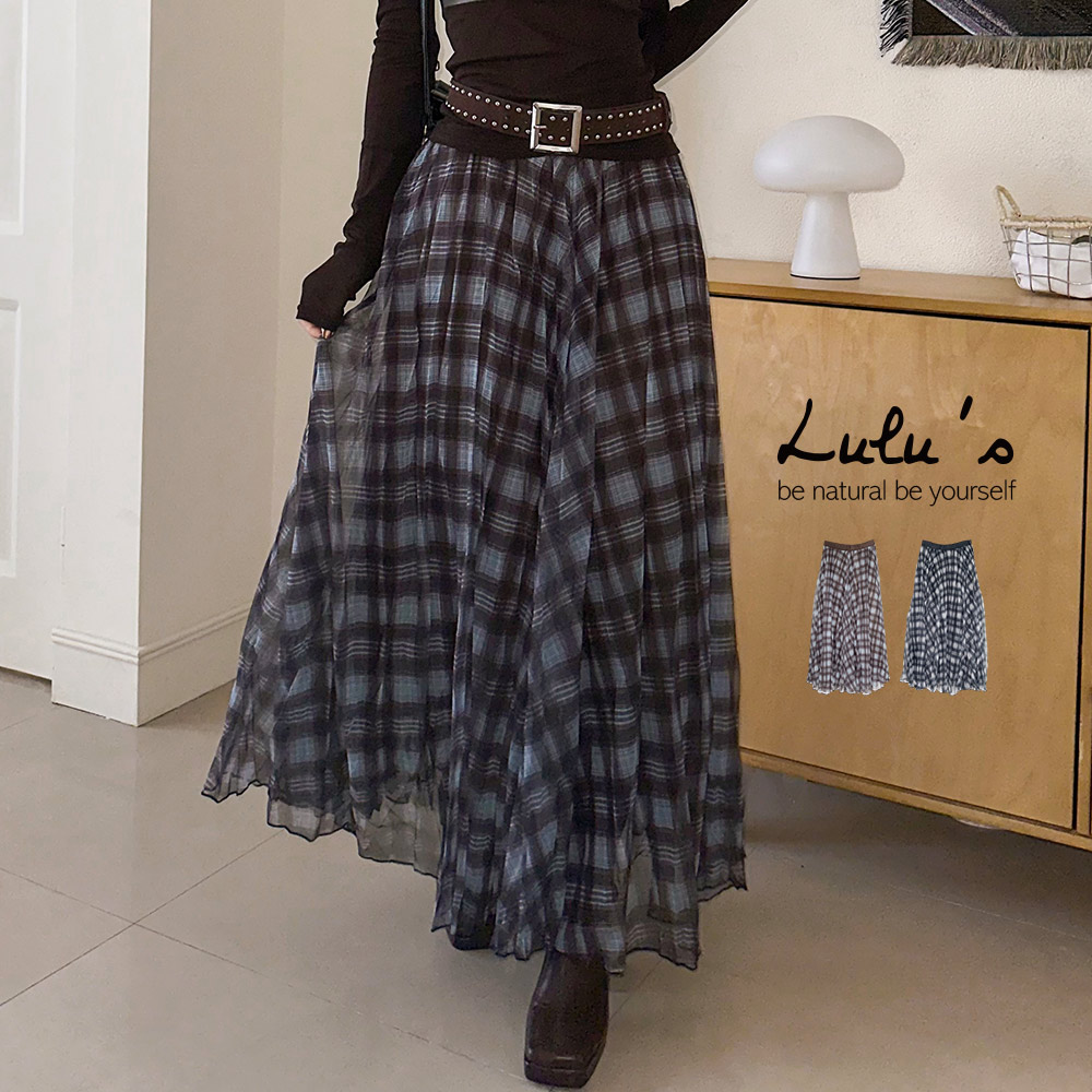 熱賣中🔥 即將售完限時下殺/飄逸格紋皺皺網紗長裙2色【A05250097】