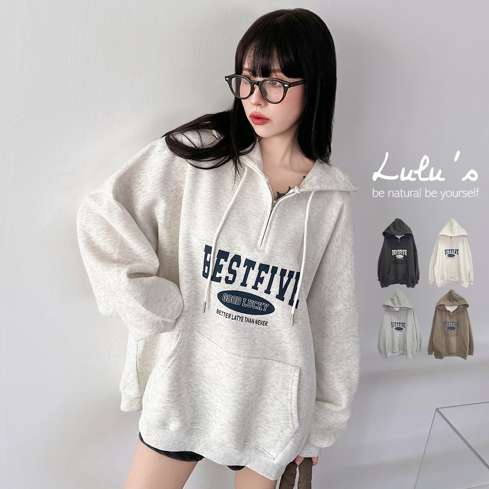 熱賣中🔥 即將售完限時下殺/美式英字半拉鍊寬鬆連帽上衣4色【A01250920】