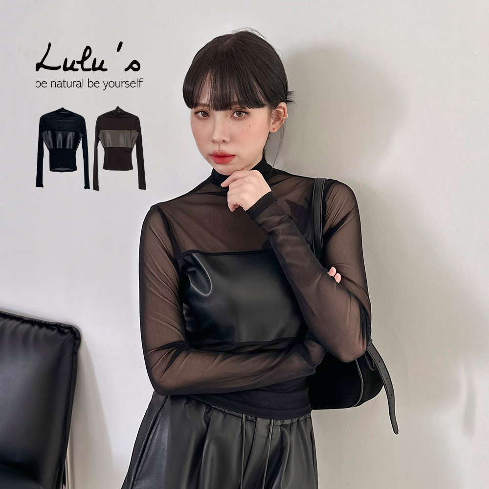熱賣中🔥 即將售完限時下殺/吸睛辣妹網紗皮質拼接上衣M-L2色【A01250927】