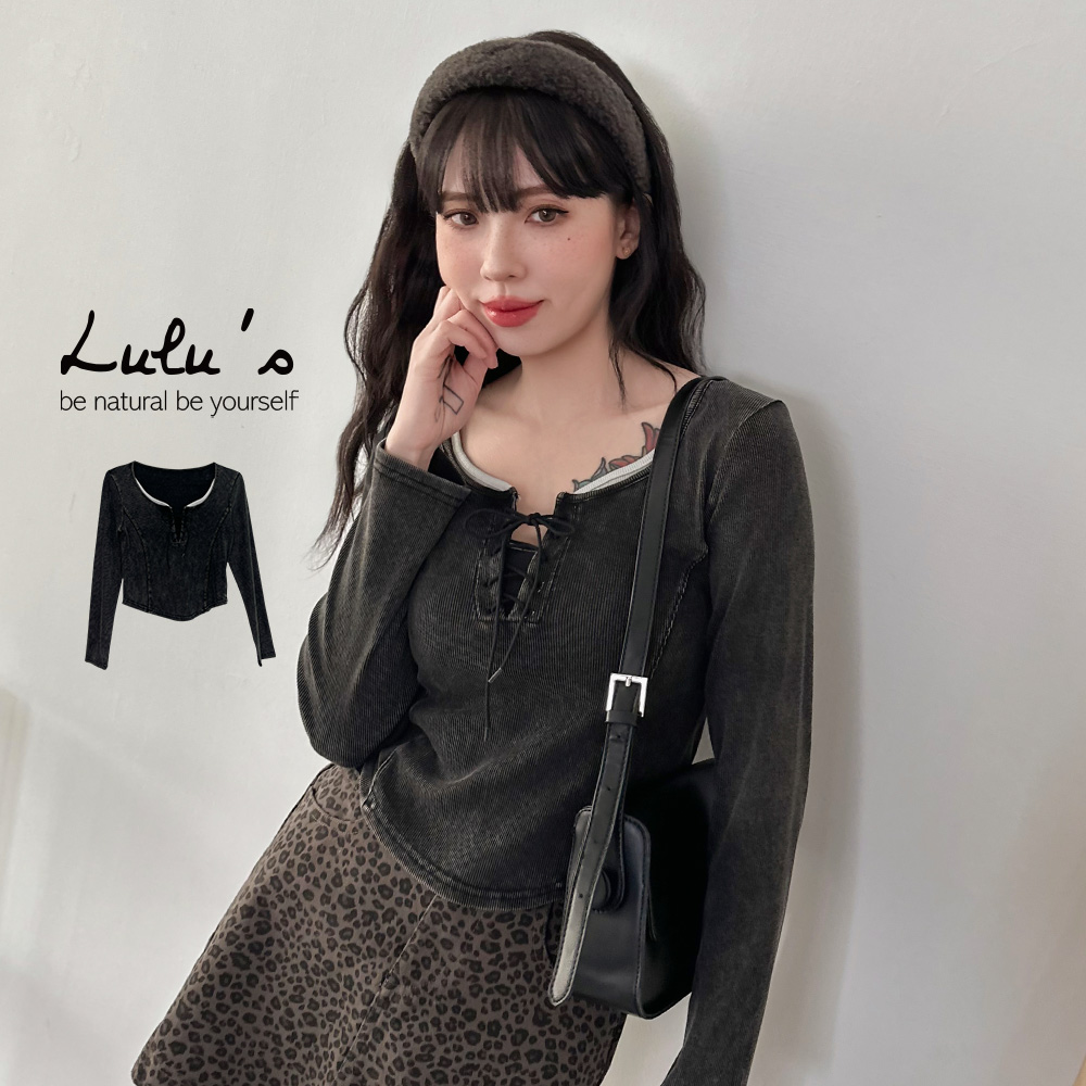 熱賣中🔥 即將售完限時下殺/假兩件胸抽繩水洗車線上衣黑灰【A01250930】