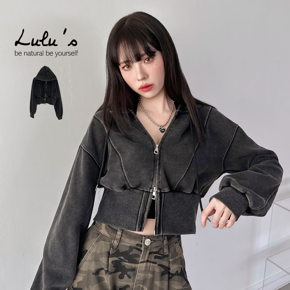 熱賣中🔥 即將售完限時下殺/個性街頭水洗雙拉鍊連帽短版外套黑灰【A03250109】