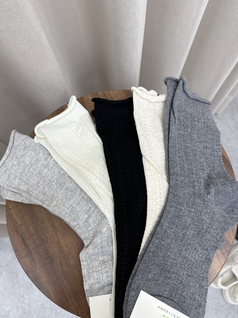 熱賣中🔥 即將售完CC18 直播價280 捲邊中筒襪 (一組5雙-白/杏/淺灰/深灰/黑)