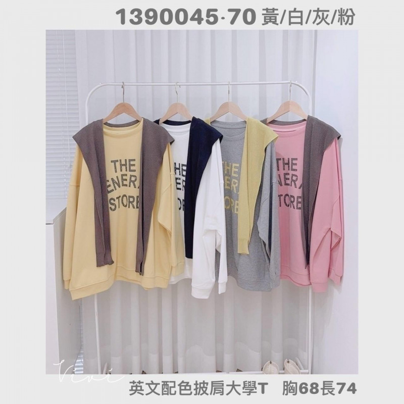 熱賣中🔥 即將售完女V0402(10)-英文配色披肩大學T(1390045)(3694白)