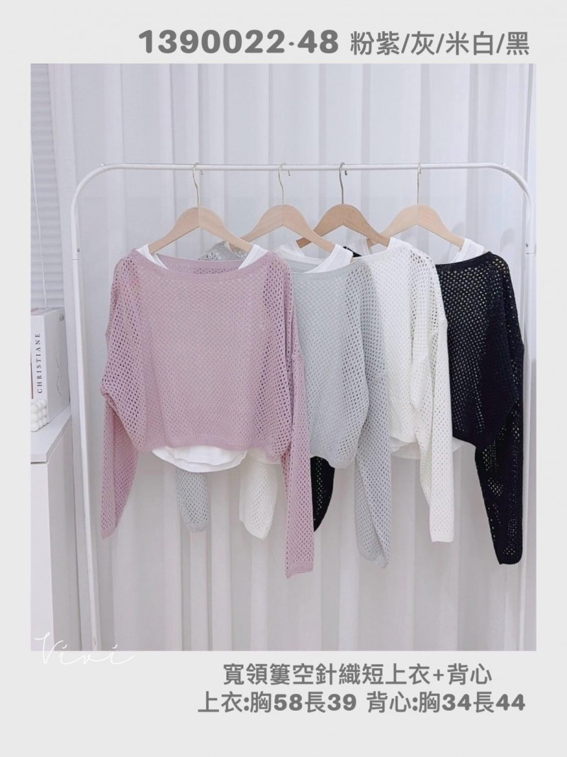 熱賣中🔥 即將售完女V0324(10)-寬領簍空針織短上衣+背心(1390022)(3458灰)