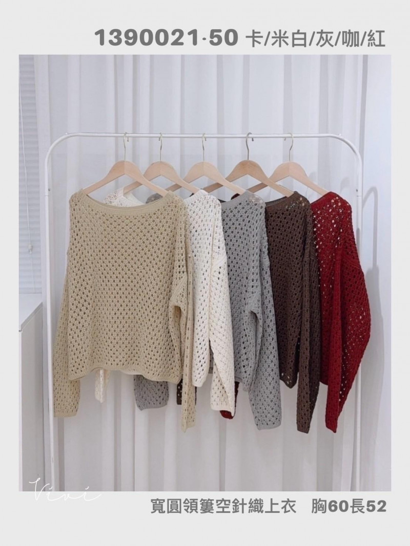 熱賣中🔥 即將售完女V0324(10)-圓領簍空針織上衣(1390021)(3491灰)