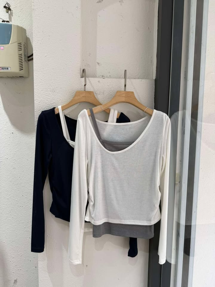 熱賣中🔥 即將售完A47不規則真兩件彈力上衣