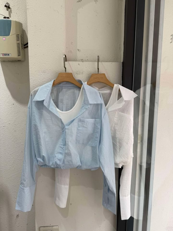 熱賣中🔥 即將售完A46假兩件微透條紋襯衫衣