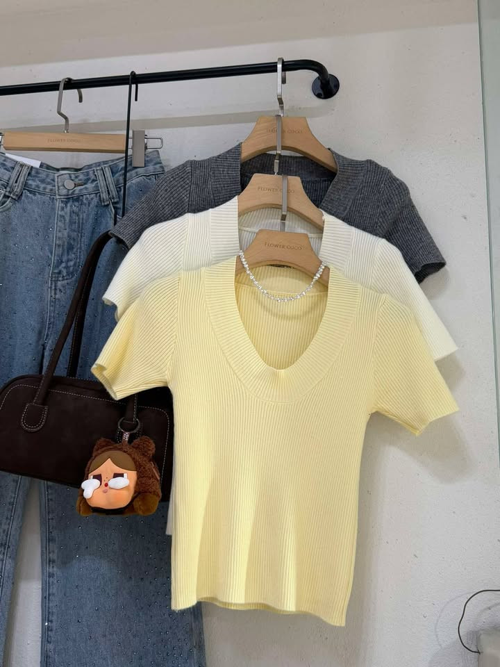 熱賣中🔥 即將售完A40U領羅紋坑條短袖上衣