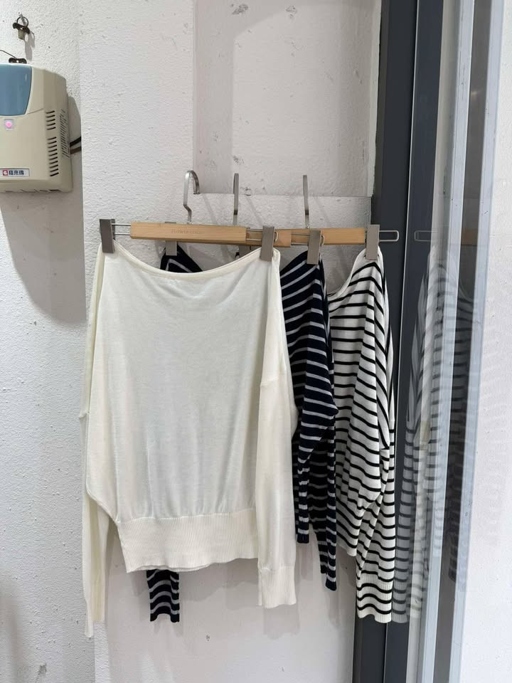 熱賣中🔥 即將售完A15慵懶風斜肩針棉上衣