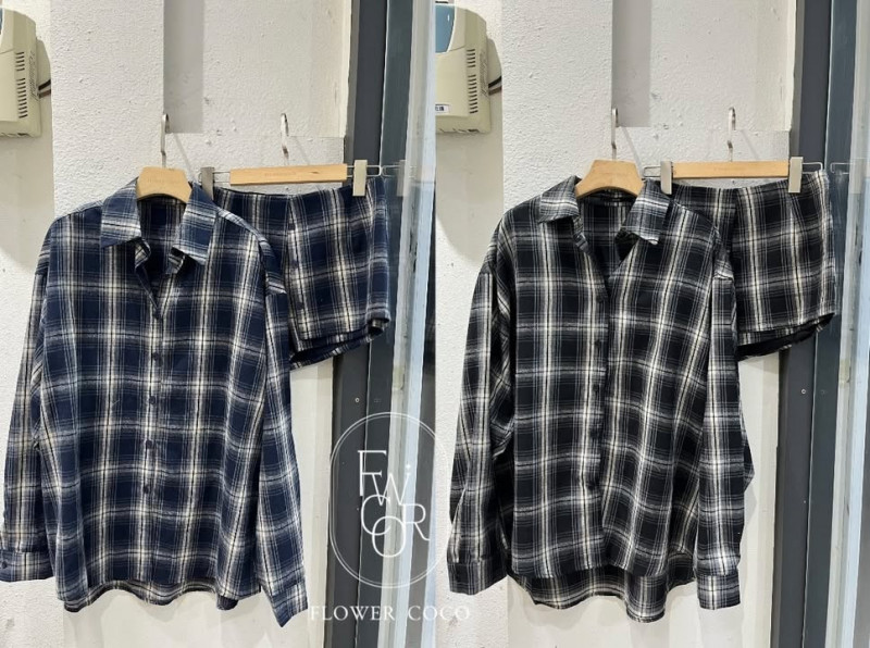 熱賣中🔥 即將售完A71(高訂)格紋襯衫+開釦裙褲SET