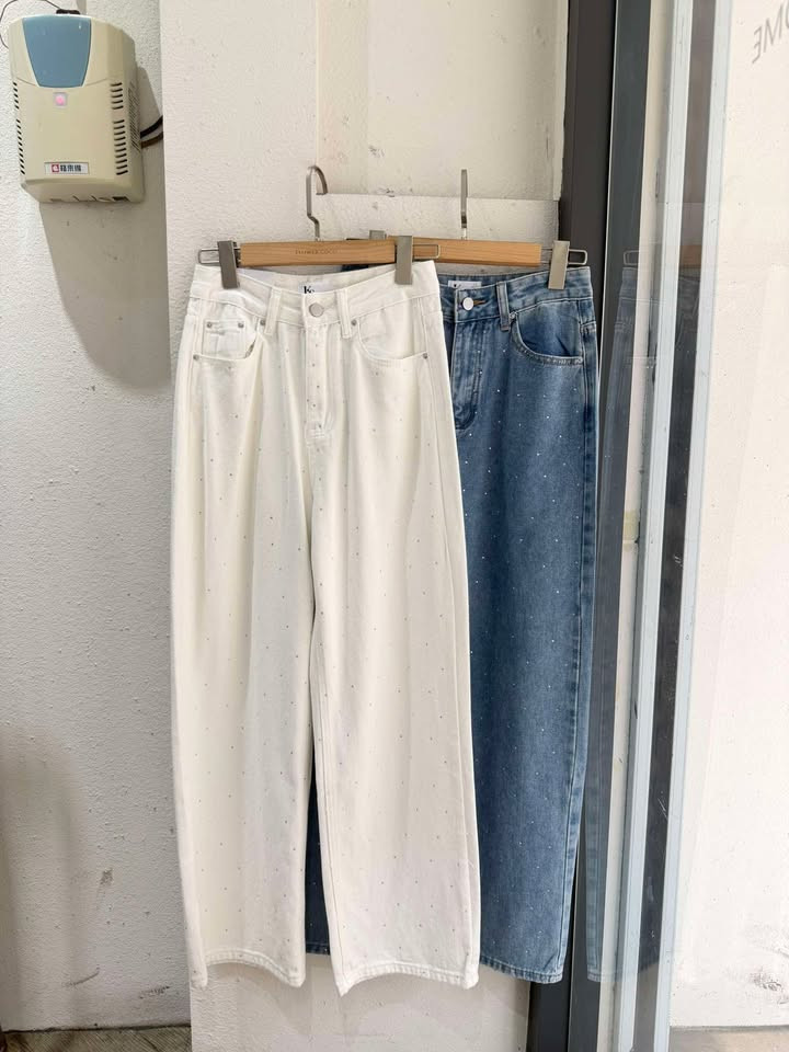熱賣中🔥 即將售完A66燙鑽牛仔直筒寬褲