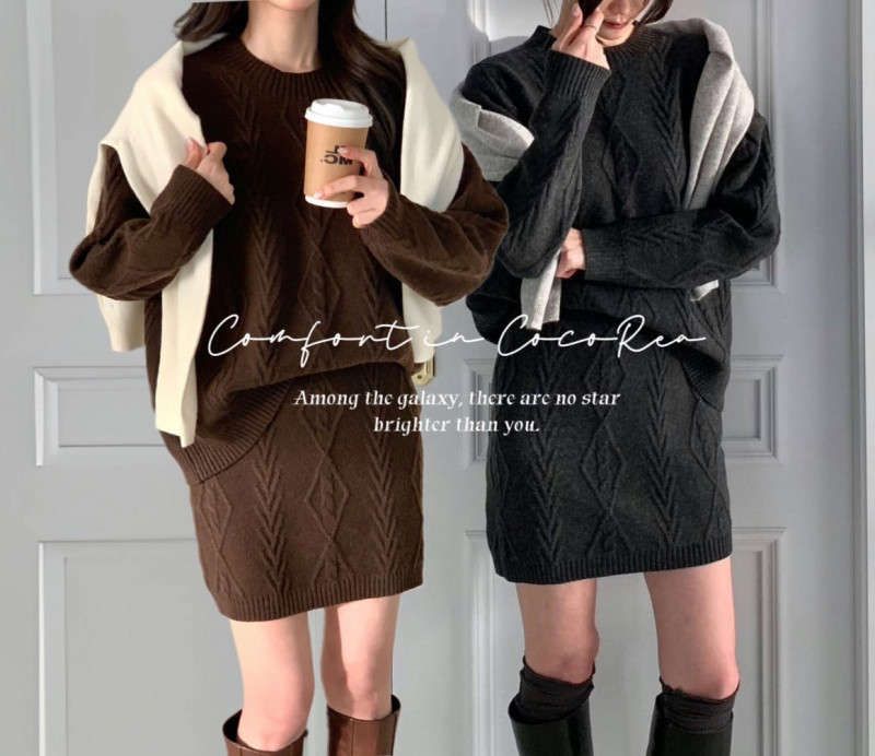 熱賣中🔥 即將售完01標 現貨 喀什米爾麻花套裝(上衣+短裙) 咖3/黑6 胸124 長65 裙長45腰24-44吋 連線價2250喜歡+1帶哪裡取(A嘉義取B台中取C郵寄)