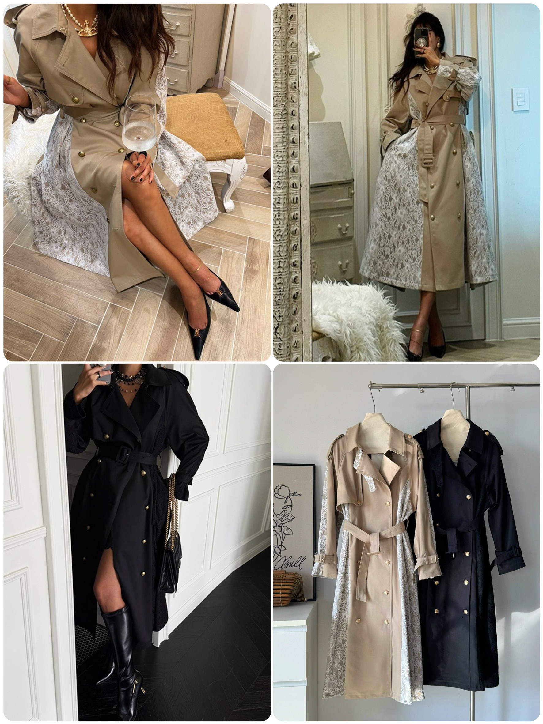 熱賣中🔥 即將售完62599709拼蕾絲金扣綁帶洋外套$1580-連線價1399