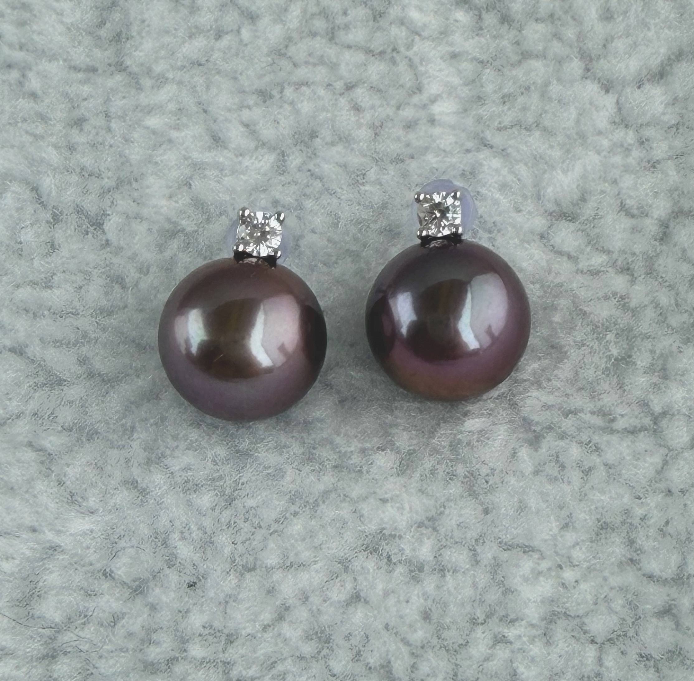 Hot Selling🔥 Almost Sold OutAP523-金属紫正圆泛绿珍珠耳钉10.5-11.5mm+-(微瑕)