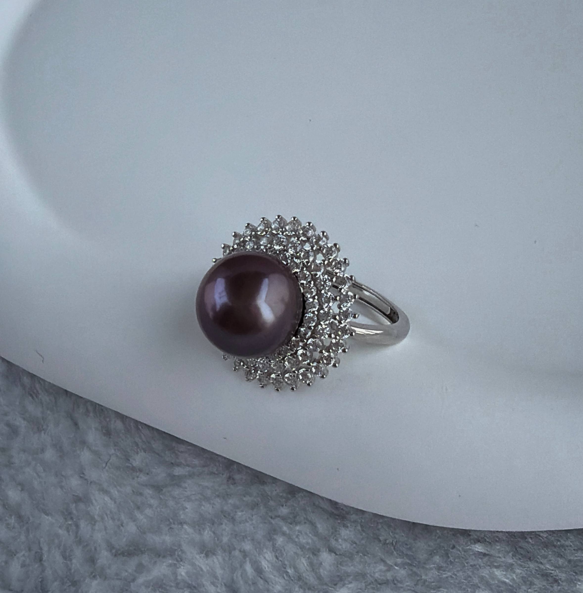 Hot Selling🔥 Almost Sold OutAP522-金属紫正圆泛绿珍珠戒指9-10mm+-(微瑕)