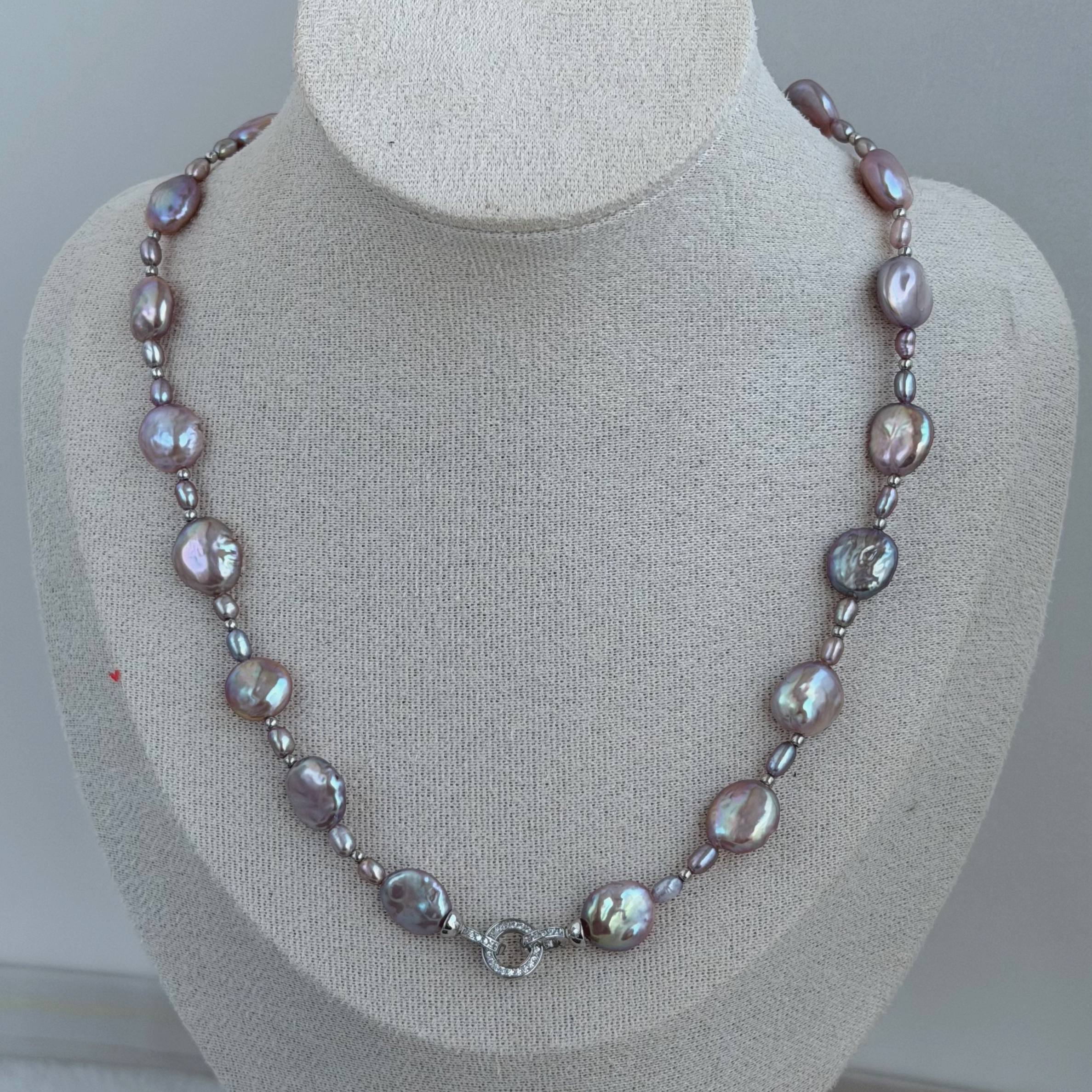 Hot Selling🔥 Almost Sold OutAP610-炫彩紫光纽扣珍珠项链|S925银隔珠