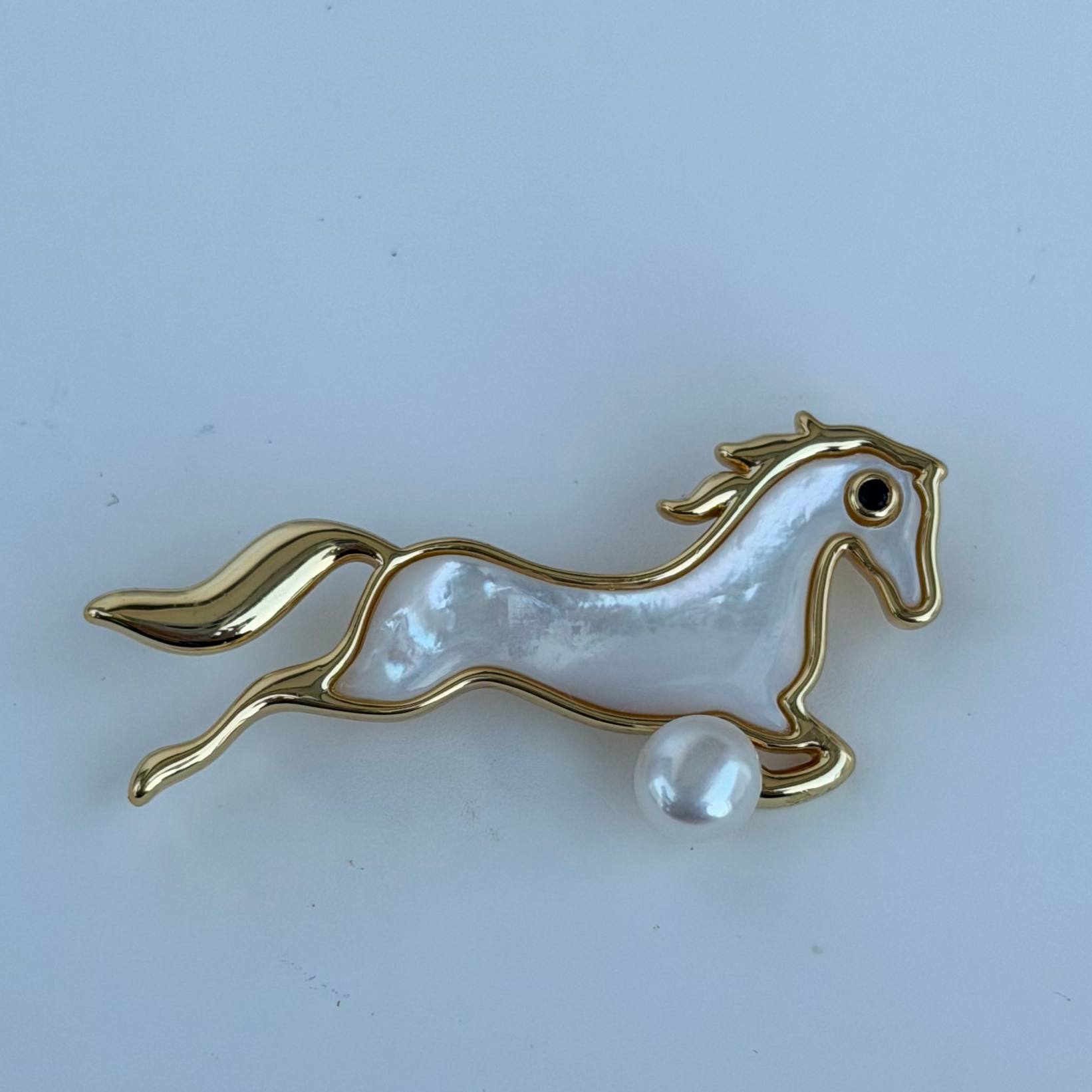 Hot Selling🔥 Almost Sold OutAP685-母贝跃马 · 面包珍珠胸针(铜)7mm+-
