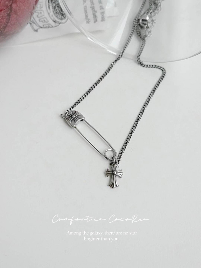 熱賣中🔥 即將售完72標 預購 別針十字架(鍍銀金)項鍊 1條 韓國連線價580喜歡+1帶哪裡取(A嘉義取B台中取C郵寄)