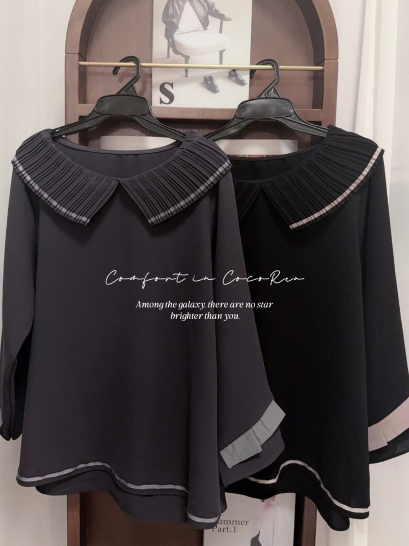 熱賣中🔥 即將售完86標 預購 百摺領a-line撞色雪紡上衣 灰/黑 胸112 長62-64 韓國連線價1280喜歡+1帶哪裡取(A嘉義取B台中取C郵寄)