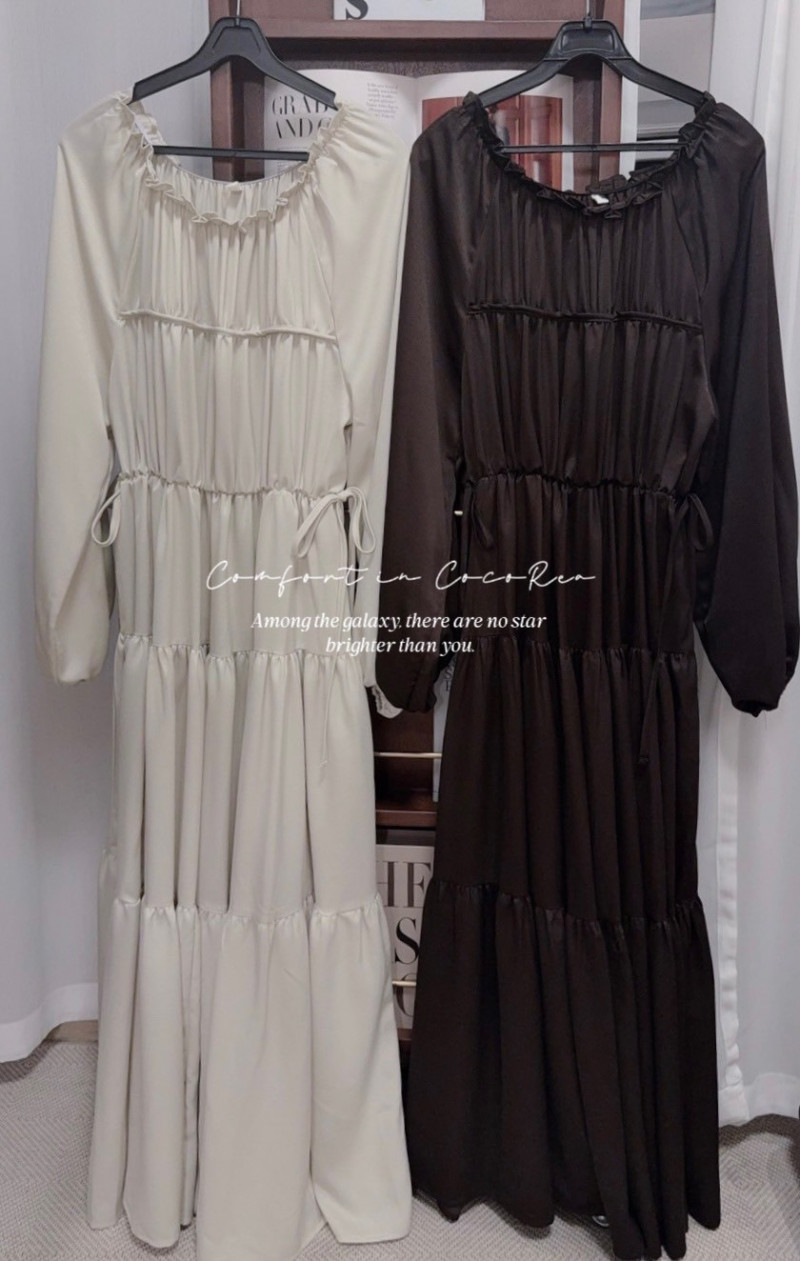 熱賣中🔥 即將售完88標 預購 小荷葉領緞雪紡長洋 咖/米 胸88-120 長136 限量10件韓國連線價2280喜歡+1帶哪裡取(A嘉義取B台中取C郵寄)