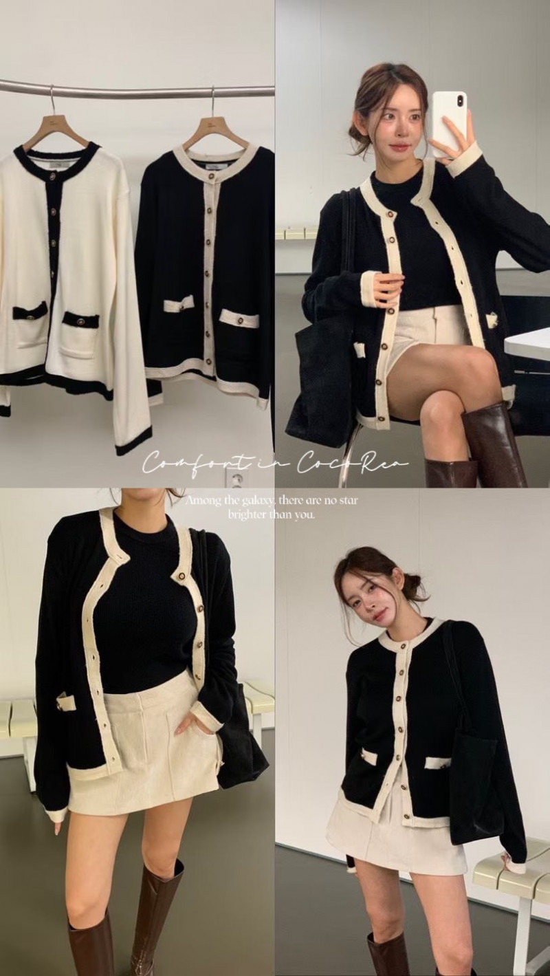 熱賣中🔥 即將售完90標 預購 撞色拼接小香針織外套 黑/米 胸110 長62 韓國連線價1580喜歡+1帶哪裡取(A嘉義取B台中取C郵寄)