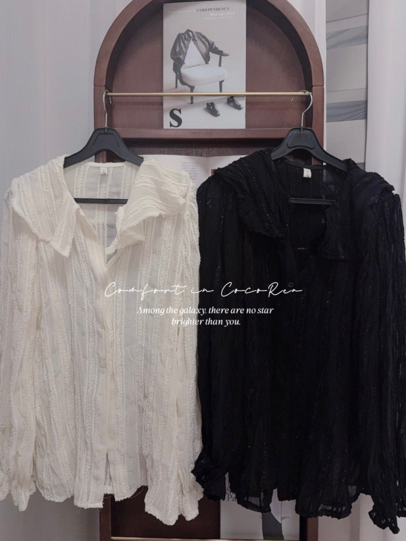 熱賣中🔥 即將售完93標 預購 高高歐膩家立體直紋荷葉長版襯衫 黑/米 胸118 長68 韓國連線價2480喜歡+1帶哪裡取(A嘉義取B台中取C郵寄)