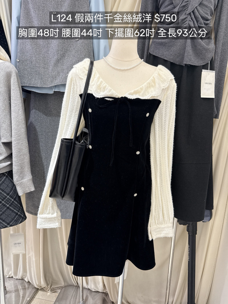 熱賣中🔥 即將售完L124假兩件千金絲絨洋